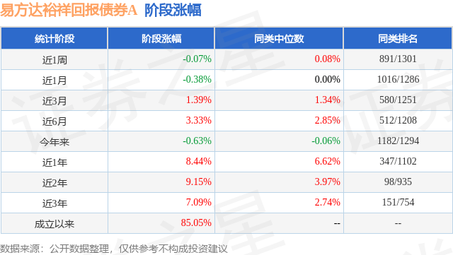 从业绩表现来看,易方达裕祥回报债券A基金过去一年净值涨幅为7.01%,在同类基金中排名143/1063,同类基金过去一年净值涨幅中位数为4.0%。而基金过去一年的最大回撤为-3.78%,成立以来的最大回撤为-7.86%。