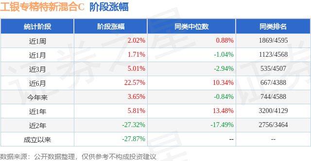 从业绩表现来看,工银专精特新混合C基金过去一年净值涨幅为-3.45%,在同类基金中排名3292/3979,同类基金过去一年净值涨幅中位数为5.4%。而基金过去一年的最大回撤为-34.34%,成立以来的最大回撤为-48.34%。