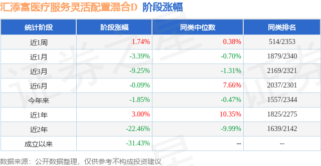 从业绩表现来看,汇添富医疗服务灵活配置混合D基金过去一年净值涨幅为11.38%,在同类基金中排名535/2261,同类基金过去一年净值涨幅中位数为5.1%。而基金过去一年的最大回撤为-23.73%,成立以来的最大回撤为-44.89%。