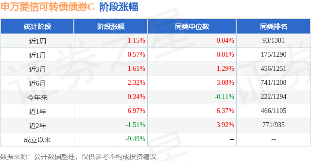 从业绩表现来看,申万菱信可转债债券C基金过去一年净值涨幅为0.06%,在同类基金中排名951/1063,同类基金过去一年净值涨幅中位数为4.0%。而基金过去一年的最大回撤为-12.75%,成立以来的最大回撤为-21.09%。