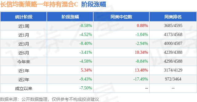 从业绩表现来看,长信均衡策略一年持有混合C基金过去一年净值涨幅为9.48%,在同类基金中排名1199/3979,同类基金过去一年净值涨幅中位数为5.4%。而基金过去一年的最大回撤为-20.21%,成立以来的最大回撤为-20.21%。