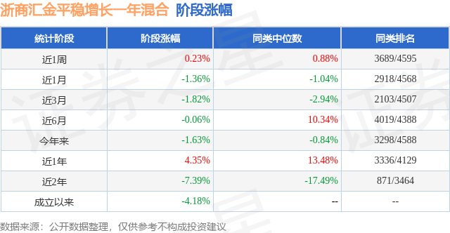 从业绩表现来看,浙商汇金平稳增长一年混合基金过去一年净值涨幅为0.64%,在同类基金中排名2533/3979,同类基金过去一年净值涨幅中位数为5.4%。而基金过去一年的最大回撤为-7.14%,成立以来的最大回撤为-13.69%。