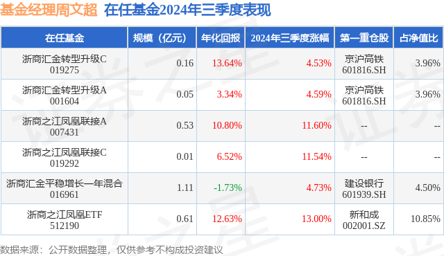 证券之星消息,日前浙商汇金平稳增长一年混合基金公布三季报,2024年三季度最新规模1.11亿元,季度净值涨幅为4.73%。