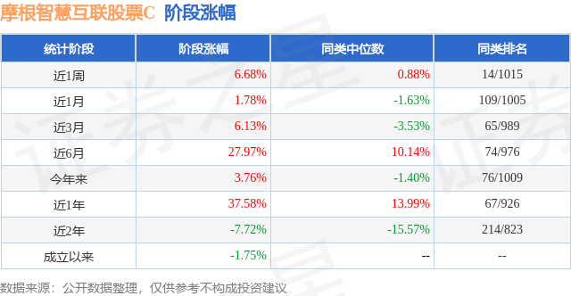 从业绩表现来看,摩根智慧互联股票C基金过去一年净值涨幅为23.78%,在同类基金中排名56/897,同类基金过去一年净值涨幅中位数为6.57%。而基金过去一年的最大回撤为-27.54%,成立以来的最大回撤为-49.4%。