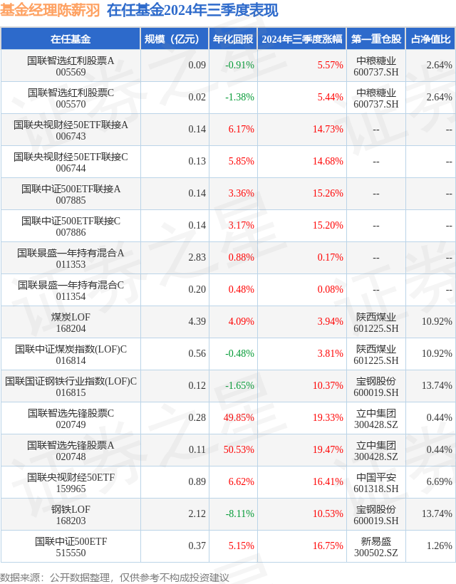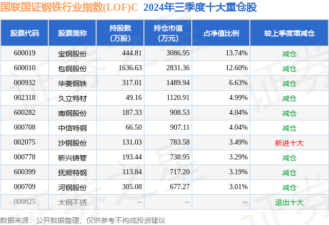 证券之星消息,日前国联国证钢铁行业指数(LOF)C基金公布三季报,2024年三季度最新规模0.12亿元,季度净值涨幅为10.37%。