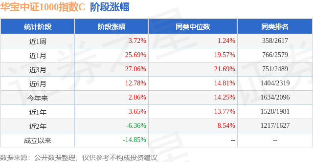 从业绩表现来看,华宝中证1000指数C基金过去一年净值涨幅为3.65%,在同类基金中排名1528/1981,同类基金过去一年净值涨幅中位数为13.77%。而基金过去一年的最大回撤为-29.87%,成立以来的最大回撤为-40.65%。