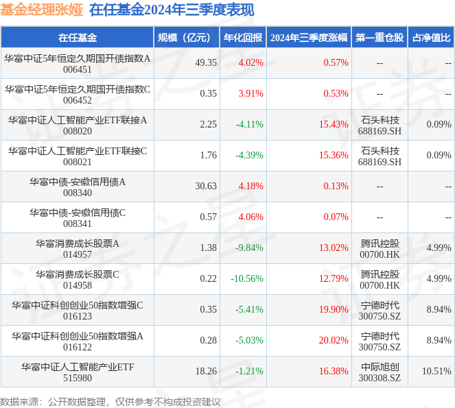 证券之星消息,日前华富中证科创创业50指数增强A基金公布三季报,2024年三季度最新规模0.28亿元,季度净值涨幅为20.02%。