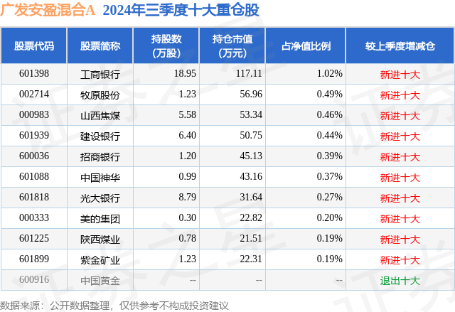 证券之星消息,日前广发安盈混合A基金公布三季报,2024年三季度最新规模1.09亿元,季度净值涨幅为1.76%。