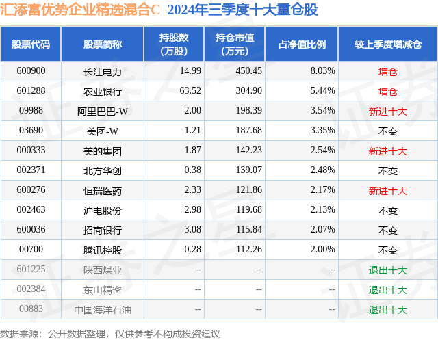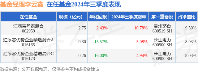 证券之星消息,日前汇添富优势企业精选混合C基金公布三季报,2024年三季度最新规模0.26亿元,季度净值涨幅为4.94%。