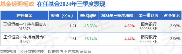 证券之星消息,日前工银恒嘉一年持有混合A基金公布三季报,2024年三季度最新规模1.21亿元,季度净值涨幅为4.6%。