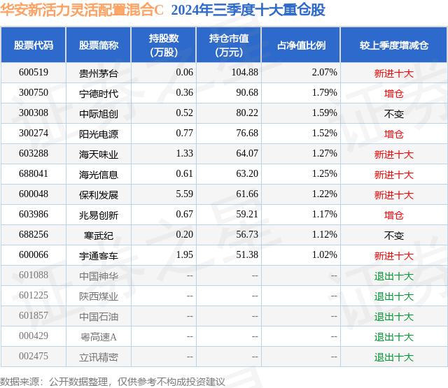 证券之星消息,日前华安新活力灵活配置混合C基金公布三季报,2024年三季度最新规模0.0亿元,季度净值涨幅为4.48%。