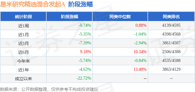 从业绩表现来看,易米研究精选混合发起A基金过去一年净值涨幅为-10.49%,在同类基金中排名3774/3979,同类基金过去一年净值涨幅中位数为5.4%。而基金过去一年的最大回撤为-33.6%,成立以来的最大回撤为-38.56%。