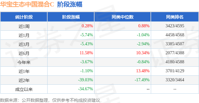 从业绩表现来看,华宝生态中国混合C基金过去一年净值涨幅为-12.29%,在同类基金中排名3857/3979,同类基金过去一年净值涨幅中位数为5.4%。而基金过去一年的最大回撤为-37.96%,成立以来的最大回撤为-52.41%。