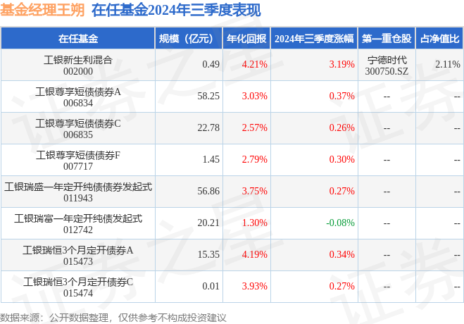 工银新生利混合现任基金经理为王朔 陈鑫。其中在任基金经理王朔已从业10年又353天,2023年2月7日正式接手管理工银新生利混合,任职期间累计回报为1.69%。目前还管理着8只基金产品(包括A类和C类),其中本季度表现最佳的基金为工银新生利混合(002000),季度净值涨幅为3.19%。
