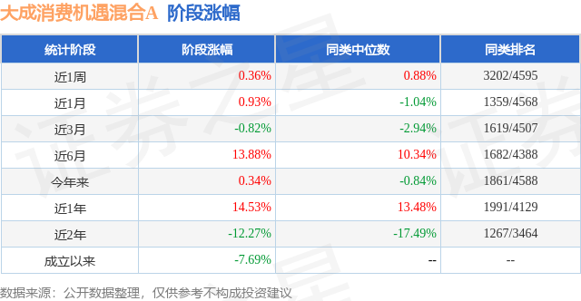 从业绩表现来看,大成消费机遇混合A基金过去一年净值涨幅为8.51%,在同类基金中排名1433/3979,同类基金过去一年净值涨幅中位数为5.4%。而基金过去一年的最大回撤为-19.93%,成立以来的最大回撤为-32.64%。