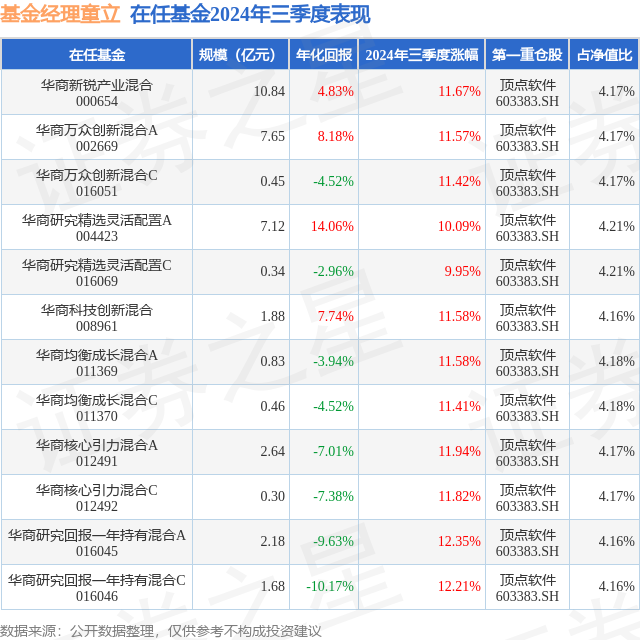 证券之星消息,日前华商新锐产业混合基金公布三季报,2024年三季度最新规模10.84亿元,季度净值涨幅为11.67%。