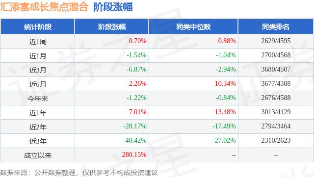 从业绩表现来看,汇添富成长焦点混合基金过去一年净值涨幅为3.56%,在同类基金中排名2186/3979,同类基金过去一年净值涨幅中位数为5.4%。而基金过去一年的最大回撤为-15.14%,成立以来的最大回撤为-62.08%。