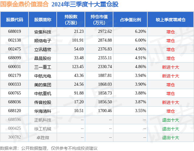 证券之星消息,日前国泰金鼎价值混合基金公布三季报,2024年三季度最新规模4.79亿元,季度净值涨幅为9.21%。