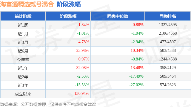 从业绩表现来看,海富通精选贰号混合基金过去一年净值涨幅为4.9%,在同类基金中排名1969/3979,同类基金过去一年净值涨幅中位数为5.4%。而基金过去一年的最大回撤为-32.26%,成立以来的最大回撤为-51.35%。