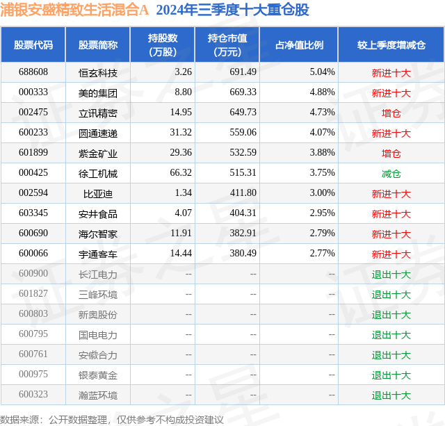 证券之星消息,日前浦银安盛精致生活混合A基金公布三季报,2024年三季度最新规模1.37亿元,季度净值涨幅为6.84%。