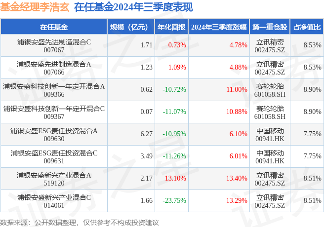 证券之星消息,日前浦银安盛新兴产业混合A基金公布三季报,2024年三季度最新规模2.17亿元,季度净值涨幅为13.4%。