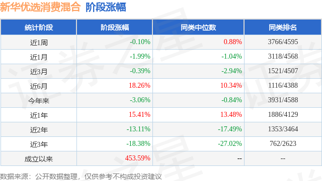 从业绩表现来看,新华优选消费混合基金过去一年净值涨幅为4.94%,在同类基金中排名2031/3979,同类基金过去一年净值涨幅中位数为5.4%。而基金过去一年的最大回撤为-19.43%,成立以来的最大回撤为-47.01%。