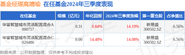 华富智慧城市灵活配置混合A现任基金经理为高靖瑜。其中在任基金经理高靖瑜已从业9年又319天,2017年5月9日正式接手管理华富智慧城市灵活配置混合A,任职期间累计回报为9.28%。目前还管理着2只基金产品(包括A类和C类),其中本季度表现最佳的基金为华富智慧城市灵活配置混合A(000757),季度净值涨幅为14.19%。