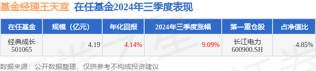 证券之星消息,日前经典成长基金公布三季报,2024年三季度最新规模4.19亿元,季度净值涨幅为9.09%。