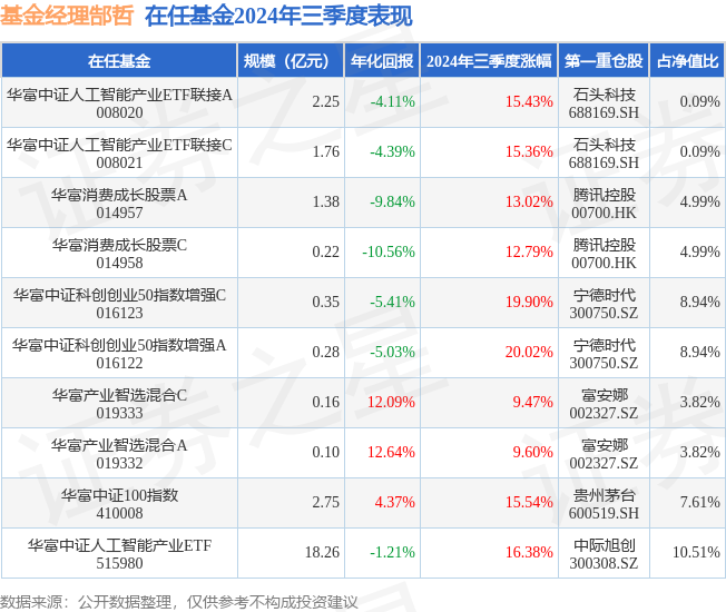 从业绩表现来看,华富中证100指数基金过去一年净值涨幅为13.23%,在同类基金中排名1002/1981,同类基金过去一年净值涨幅中位数为13.77%。而基金过去一年的最大回撤为-12.56%,成立以来的最大回撤为-42.14%。