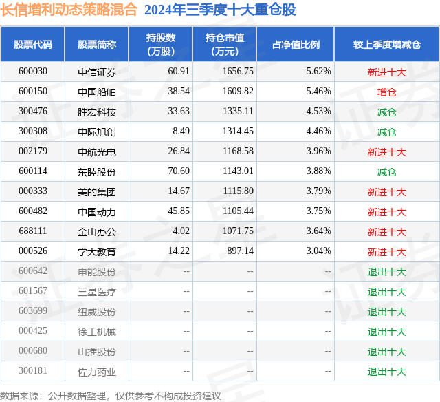 证券之星消息,日前长信增利动态策略混合基金公布三季报,2024年三季度最新规模2.95亿元,季度净值涨幅为10.09%。