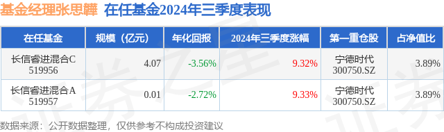证券之星消息,日前长信睿进混合A基金公布三季报,2024年三季度最新规模0.01亿元,季度净值涨幅为9.33%。
