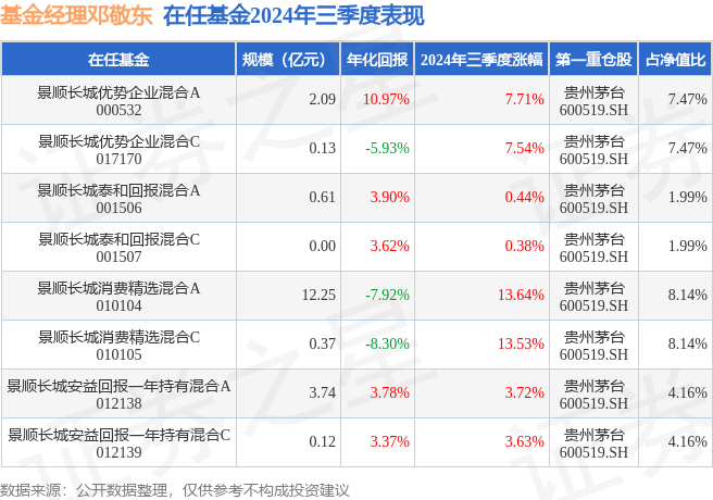 证券之星消息,日前景顺长城优势企业混合A基金公布三季报,2024年三季度最新规模2.09亿元,季度净值涨幅为7.71%。