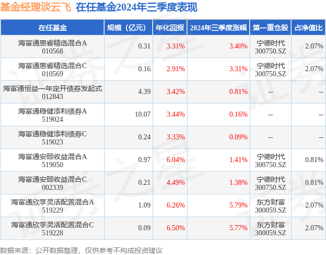 证券之星消息,日前海富通欣享灵活配置混合C基金公布三季报,2024年三季度最新规模0.09亿元,季度净值涨幅为5.77%。