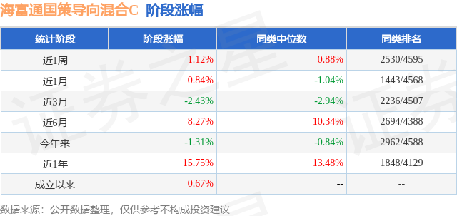 从业绩表现来看,海富通国策导向混合C基金过去一年净值涨幅为11.16%,在同类基金中排名1104/3979,同类基金过去一年净值涨幅中位数为5.4%。而基金过去一年的最大回撤为-12.86%,成立以来的最大回撤为-16.84%。