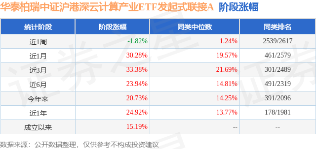 从业绩表现来看,华泰柏瑞中证沪港深云计算产业ETF发起式联接A基金过去一年净值涨幅为24.92%,在同类基金中排名178/1981,同类基金过去一年净值涨幅中位数为13.77%。而基金过去一年的最大回撤为-27.87%,成立以来的最大回撤为-27.87%。