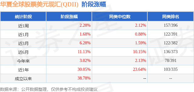 从业绩表现来看,华夏全球股票美元现汇(QDII)基金过去一年净值涨幅为32.82%,在同类基金中排名87/315,同类基金过去一年净值涨幅中位数为25.32%。而基金过去一年的最大回撤为-10.33%,成立以来的最大回撤为-10.33%。