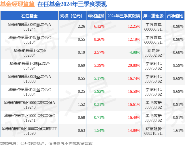 证券之星消息,日前华泰柏瑞中证1000指数增强C基金公布三季报,2024年三季度最新规模0.68亿元,季度净值涨幅为16.49%。