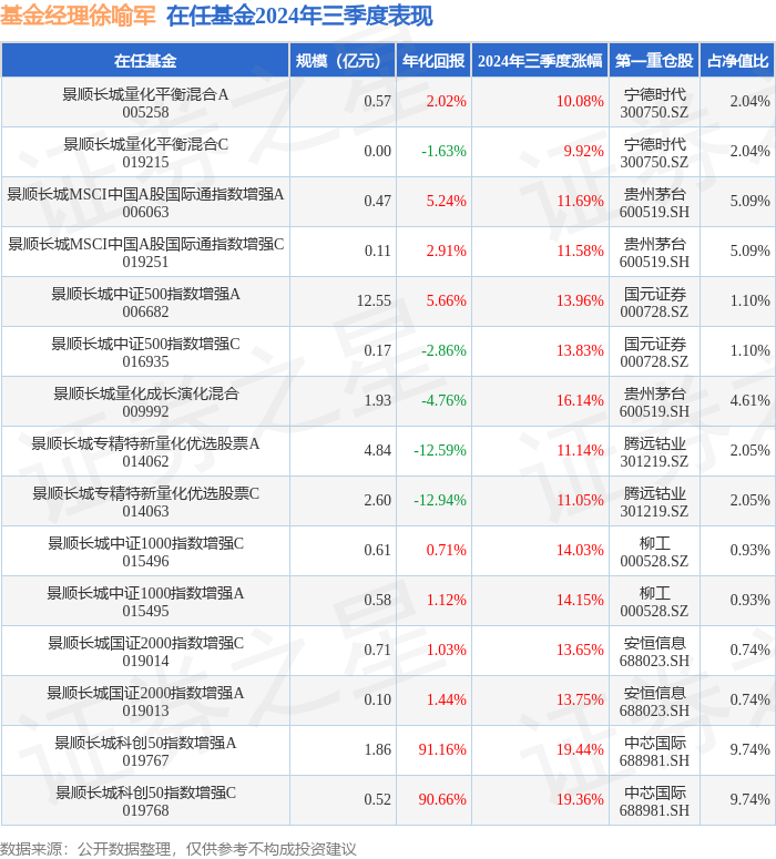 证券之星消息,日前景顺长城MSCI中国A股国际通指数增强C基金公布三季报,2024年三季度最新规模0.11亿元,季度净值涨幅为11.58%。