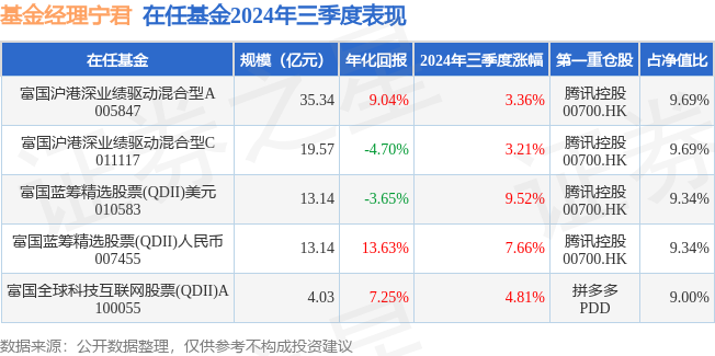 证券之星消息,日前富国全球科技互联网股票(QDII)A基金公布三季报,2024年三季度最新规模4.03亿元,季度净值涨幅为4.81%。