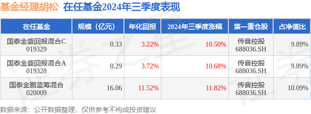 证券之星消息,日前国泰金鹏蓝筹混合基金公布三季报,2024年三季度最新规模16.06亿元,季度净值涨幅为11.82%。