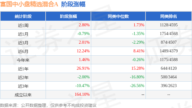 从业绩表现来看,富国中小盘精选混合A基金过去一年净值涨幅为8.93%,在同类基金中排名1514/3979,同类基金过去一年净值涨幅中位数为5.4%。而基金过去一年的最大回撤为-21.84%,成立以来的最大回撤为-54.05%。