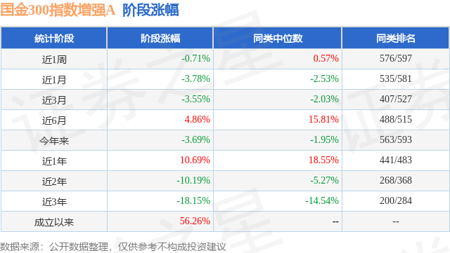 从业绩表现来看,国金300指数增强A基金过去一年净值涨幅为-2.03%,在同类基金中排名436/457,同类基金过去一年净值涨幅中位数为10.83%。而基金过去一年的最大回撤为-21.26%,成立以来的最大回撤为-48.7%。