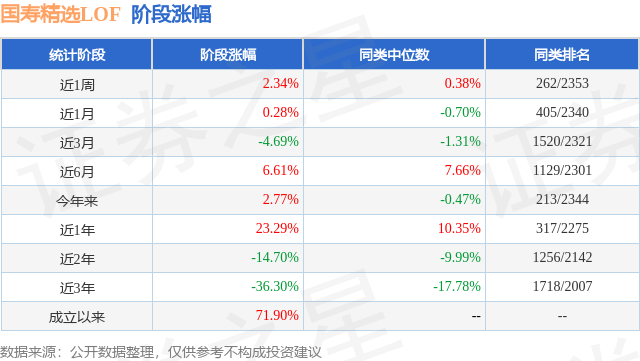 从业绩表现来看,国寿精选LOF基金过去一年净值涨幅为21.05%,在同类基金中排名135/2261,同类基金过去一年净值涨幅中位数为5.1%。而基金过去一年的最大回撤为-37.57%,成立以来的最大回撤为-59.74%。