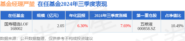 证券之星消息,日前国寿精选LOF基金公布三季报,2024年三季度最新规模2.05亿元,季度净值涨幅为7.69%。