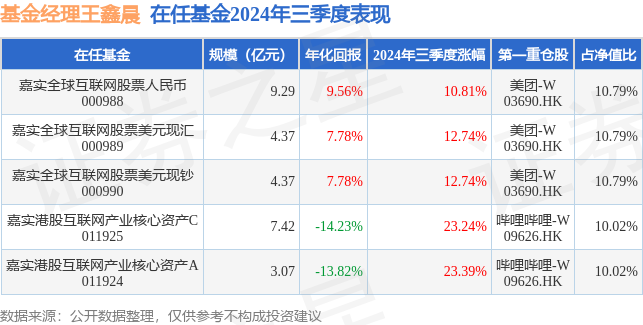 证券之星消息,日前嘉实全球互联网股票美元现钞基金公布三季报,2024年三季度最新规模4.37亿元,季度净值涨幅为12.74%。