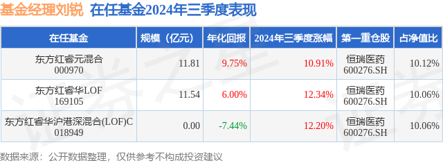 证券之星消息,日前东方红睿华LOF基金公布三季报,2024年三季度最新规模11.54亿元,季度净值涨幅为12.34%。