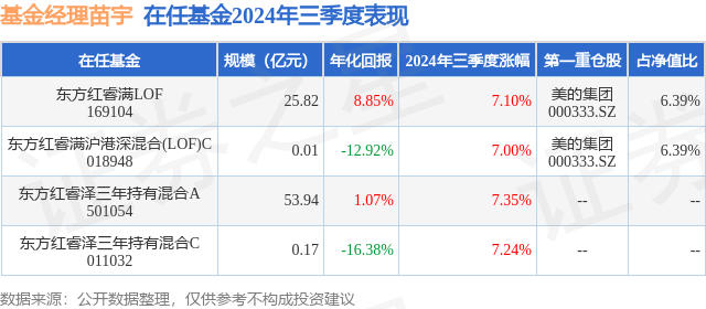 东方红睿满LOF现任基金经理为苗宇 胡晓。其中在任基金经理苗宇已从业9年又49天,2023年6月3日正式接手管理东方红睿满LOF,任职期间累计回报为-14.89%。目前还管理着4只基金产品(包括A类和C类),其中本季度表现最佳的基金为东方红睿泽三年持有混合A(501054),季度净值涨幅为7.35%。