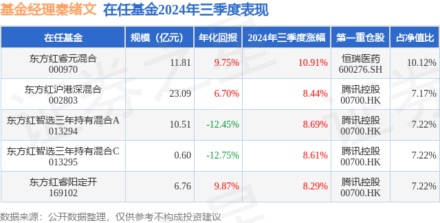 证券之星消息,日前东方红睿元混合基金公布三季报,2024年三季度最新规模11.81亿元,季度净值涨幅为10.91%。