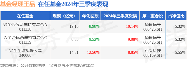 证券之星消息,日前兴全全球视野股票基金公布三季报,2024年三季度最新规模14.81亿元,季度净值涨幅为8.85%。