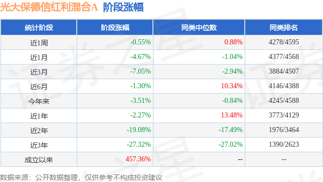 从业绩表现来看,光大保德信红利混合A基金过去一年净值涨幅为-0.64%,在同类基金中排名2870/3979,同类基金过去一年净值涨幅中位数为5.4%。而基金过去一年的最大回撤为-19.1%,成立以来的最大回撤为-67.07%。